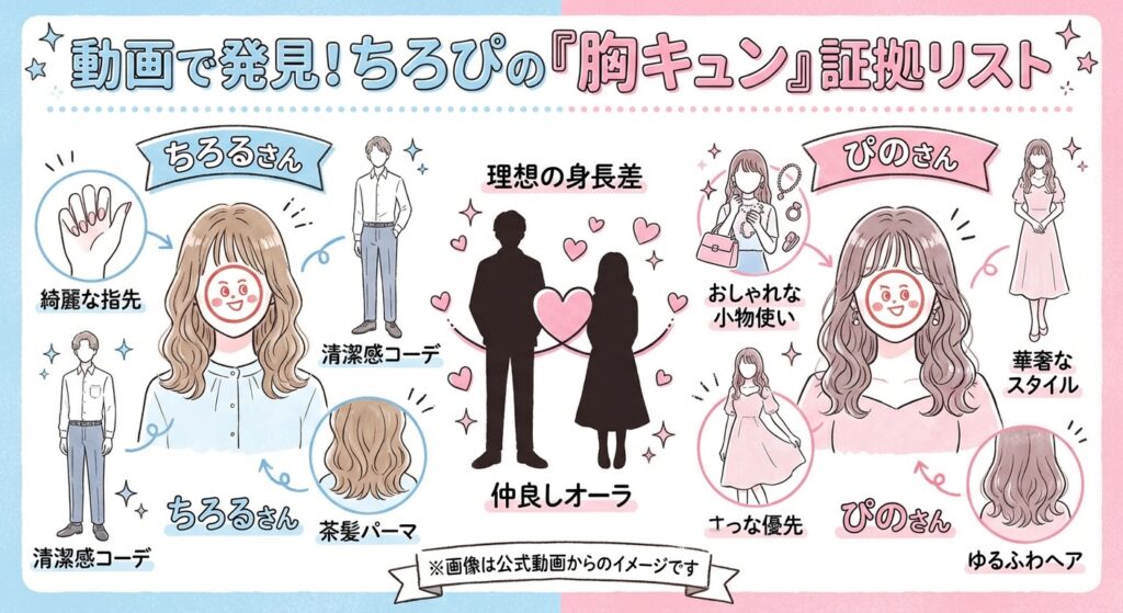 「顔写真がないなら、どうやって美男美女だってわかるの?」と思うかもしれません。でも、「ちろぴの」と「実写動画」の間には、素顔を証明する確かな証拠(ヒント)がたくさん隠されています。