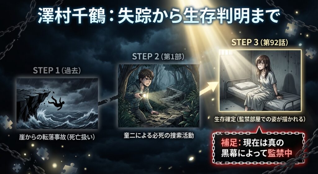 結論から言うと、澤村千鶴は生きています。