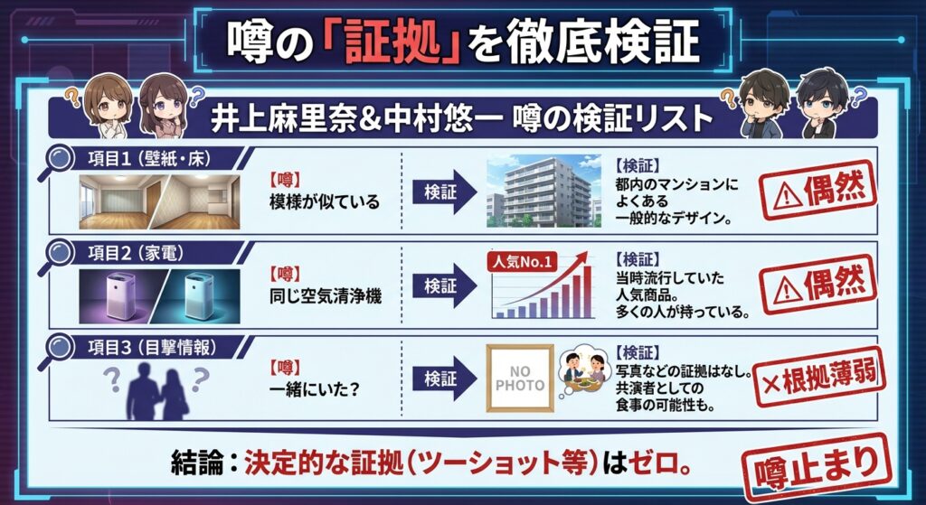 ネットで検索すると、「壁紙が一致した」「同じ家電を使っている」といった検証画像が出てきて、不安になってしまうかもしれません。