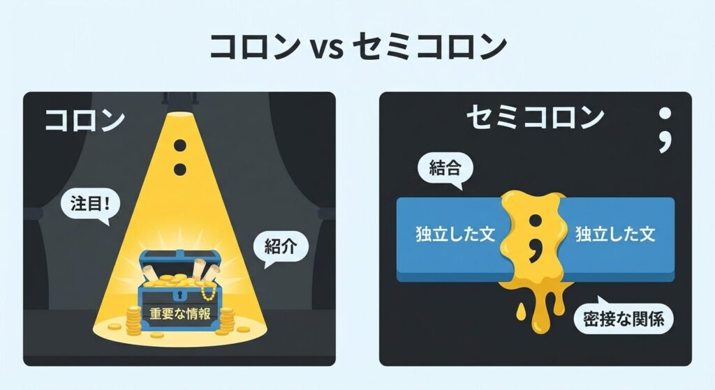 【結論】コロンは「スポットライト」、セミコロンは「接着剤」