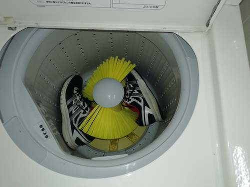 3】洗濯槽の洗浄が終わればふたロックが解除されるので、靴を入れ込んで再度蓋を閉めます。