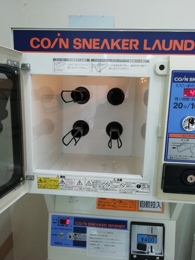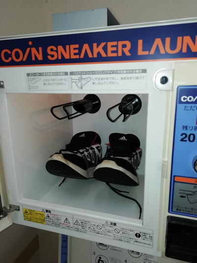 乾燥時間の目安は、おとなの靴だと40分(200円)、子供の靴だと20分(100円)くらいになります。今回、25.5cmのスニーカーなので20分で充分乾燥しました。