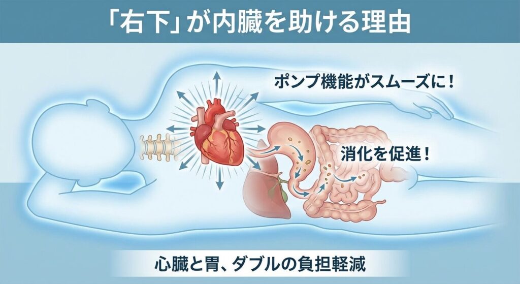 「右を下にして寝ると体に良い」という説には、解剖学的な明確な理由が2つあります。