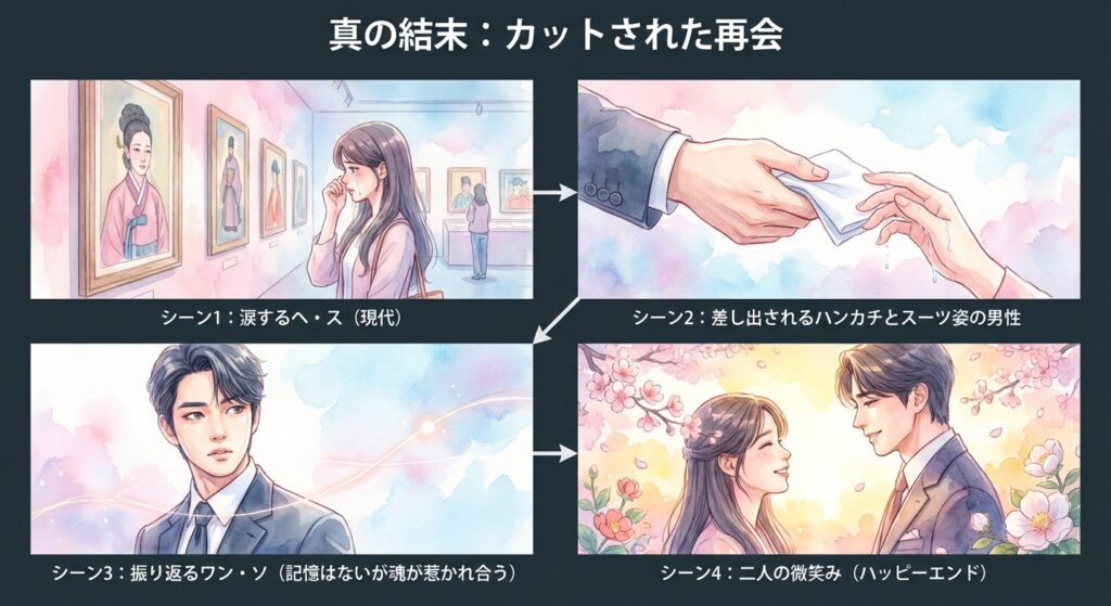 画面には映らなかったけれど、ヘ・スとワン・ソは現代で間違いなく再会しています。