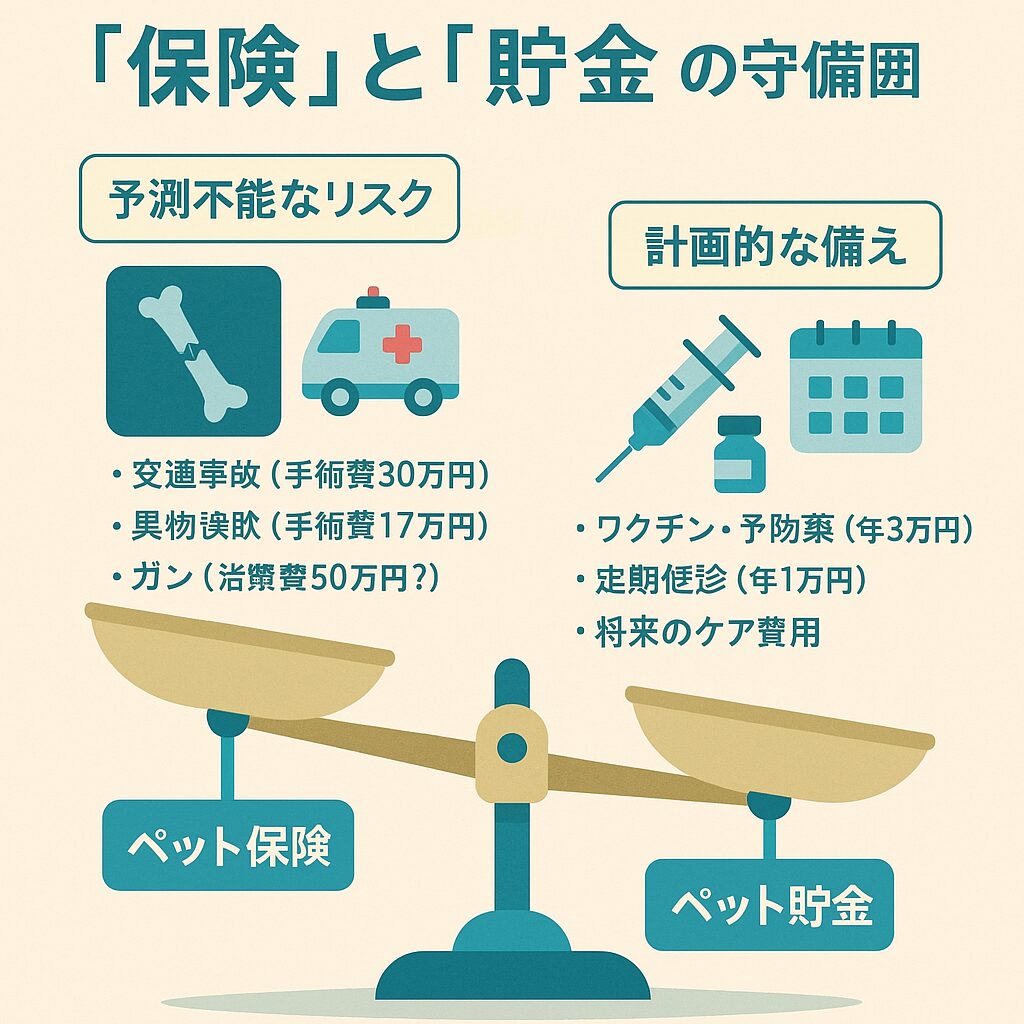 → Aタイプなら「ペット貯金」、Bタイプなら「ペット保険」が向いています。