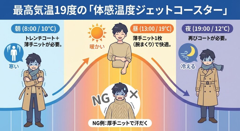 「厚手ニット」はなぜNG?最高気温19度のリアルな体感温度と失敗談
