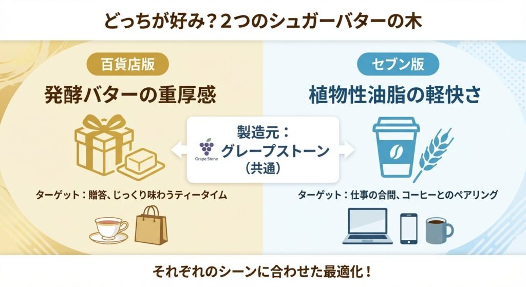 百貨店版(重厚)とセブン版(軽快)には、明確な設計思想の差が存在します。
