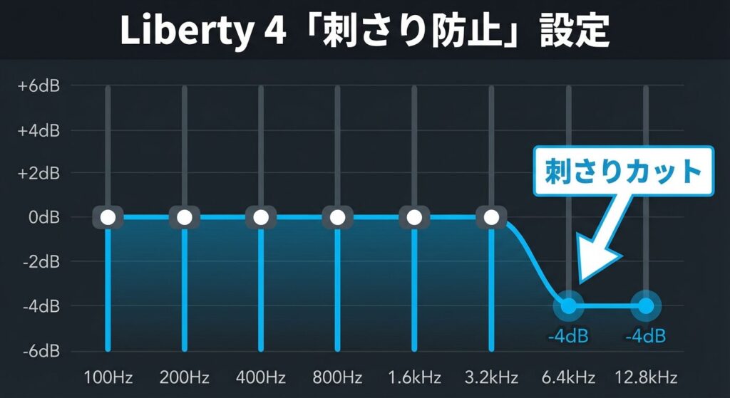 ネット上で見かける「おすすめ設定」を適当に真似してはいけない理由がここにあります。もし、Liberty 4 NCを使っているあなたが、Liberty 4用の「高音を上げる設定」を適用したらどうなるでしょうか? ただでさえバランスが崩れているのに、さらに耳を痛める結果になります。