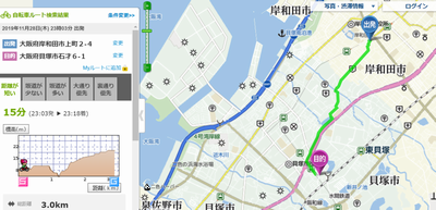 Googleマップは、徒歩や車、電車について経路や所要時間を表示しているので便利ですが、あいにく自転車での所要時間は分かりません。